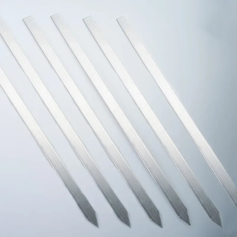 Elevate your grilling experience with these high-quality flat skewers, perfect for crafting delicious shish kebabs, Turkish, Persian, Iranian, Mediterranean, and Brazilian-style grills.