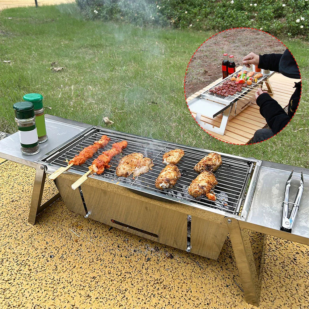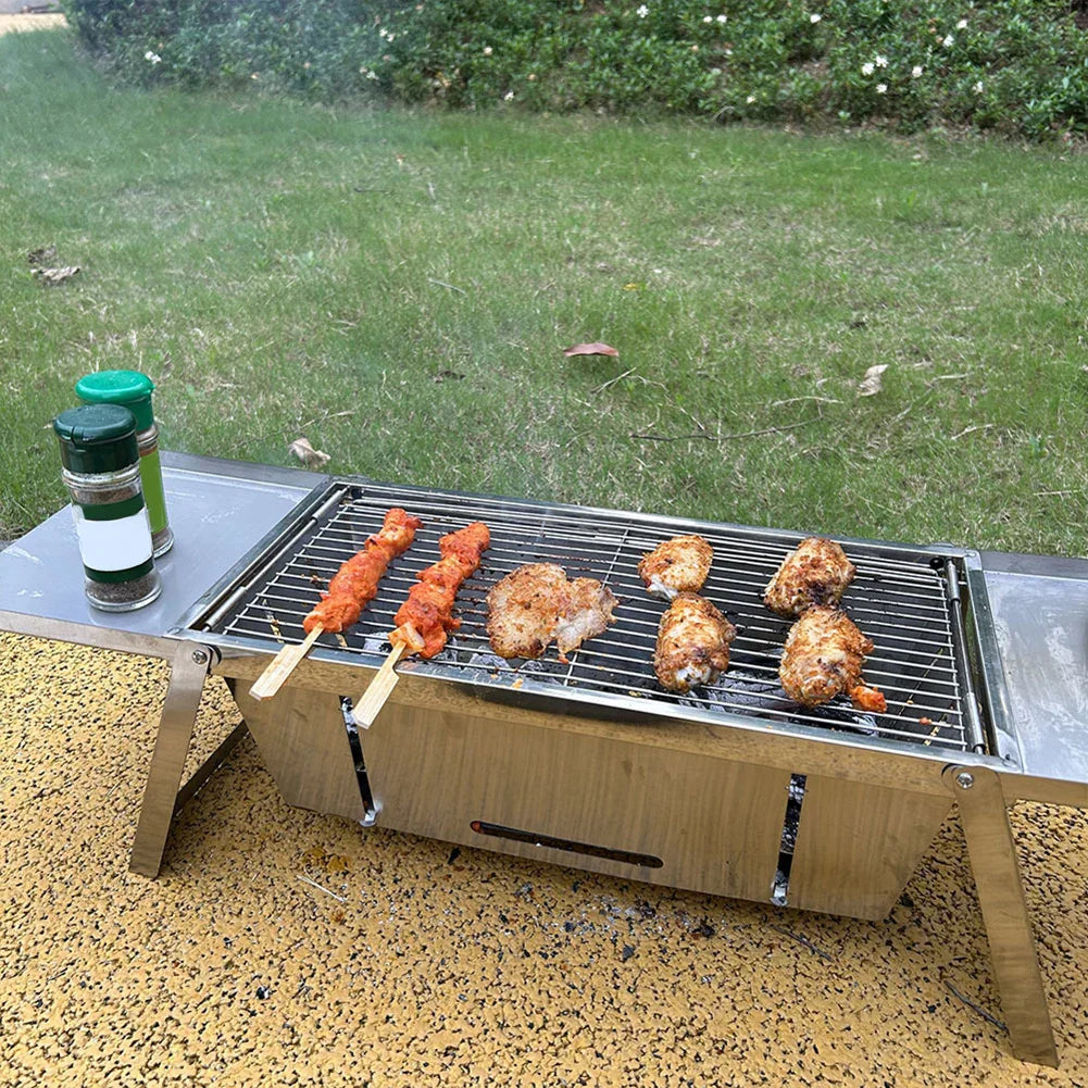 Elevate your outdoor cooking game — get your Stainless Steel Folding Barbecue Grill today!