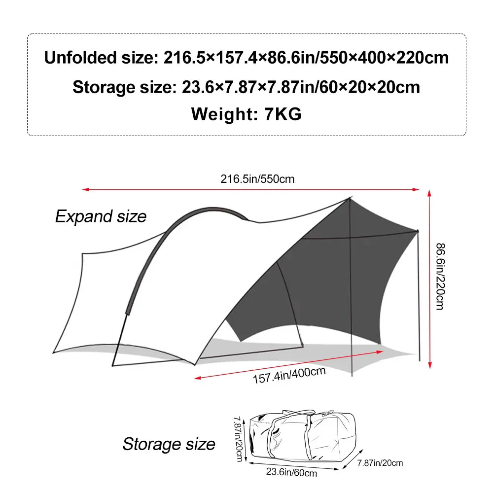 Experience the great outdoors with our spacious and durable camping sun shade canopy. Perfect for group outings, this tent provides reliable protection against the elements, ensuring comfort during any adventure.