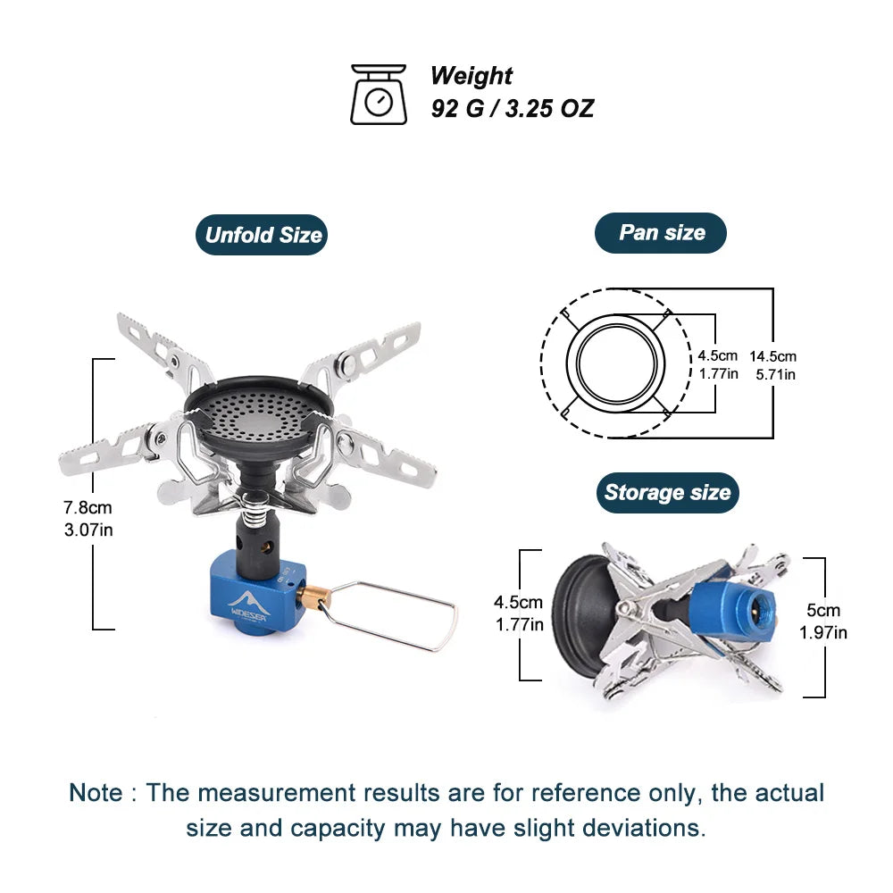 - Quick setup and ignition for convenient outdoor usePerfect for camping, hiking, backpacking, and emergency preparednessIdeal gift for outdoor adventurers, campers, and survivalistsEnhance your outdoor cooking experience with this reliable and efficient camping stove!