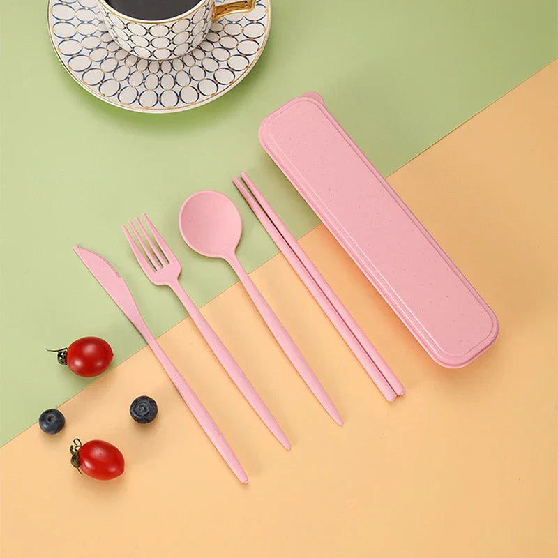 4Pcs Travel Cutlery Sets – Portable Wheat Straw Tableware