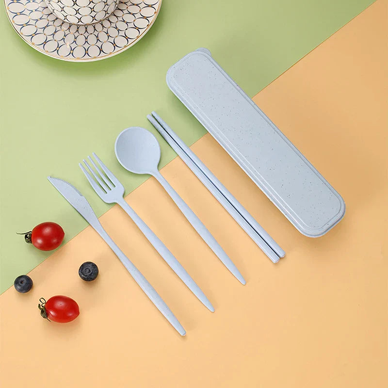 4Pcs Travel Cutlery Sets – Portable Wheat Straw Tableware