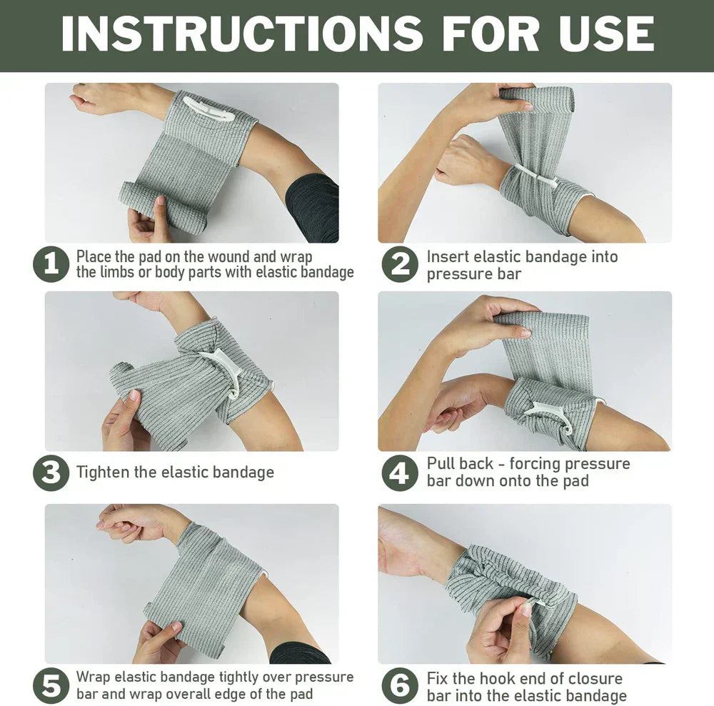 Available in 4-inch and 6-inch sizes for versatile wound coverageHighly absorbent pad for efficient blood absorption and wound protectionIntegrated pressure applicator for effective compression and bleeding controlSecure closure bar to maintain tight bandage application during movementCompact and lightweight, ideal for IFAK, trauma kits, and military medical suppliesPerfect for military personnel, first responders, and outdoor enthusiastsGreat for use in combat situations, emergency response, or outdoor adventures